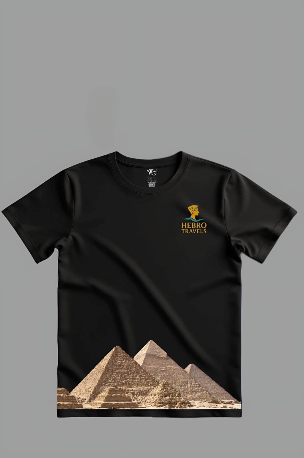 Embark on your next adventure with the Hebro Travels Black T-Shirt. Featuring the iconic pyramids at the base and the distinguished Hebro Travels logo with the Nefertiti bust, this shirt is a tribute to ancient wonders and modern exploration. Crafted for comfort and designed to inspire, it’s the perfect attire for the discerning traveler.